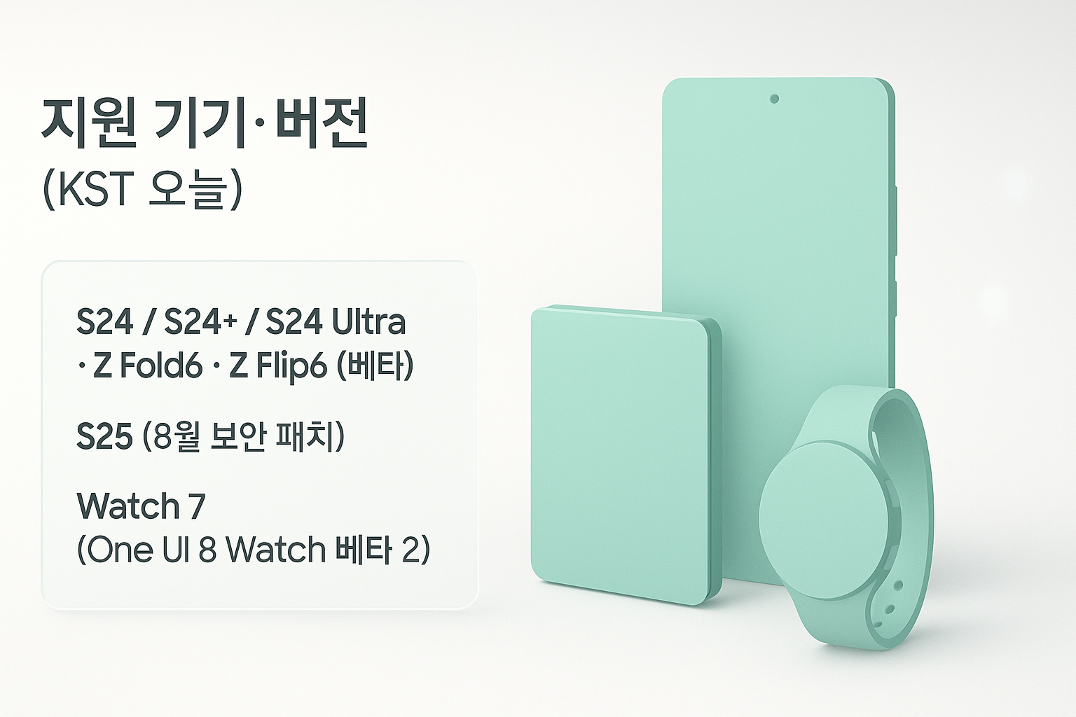 오늘자 기준으로 삼성 One UI 8 베타 확대와 S25 보안패치/향후 베타 일정 관측, 워치 베타 2까지 한 번에 정리했습니다. 설치 전엔 백업·호환부터 꼭 점검하세요.